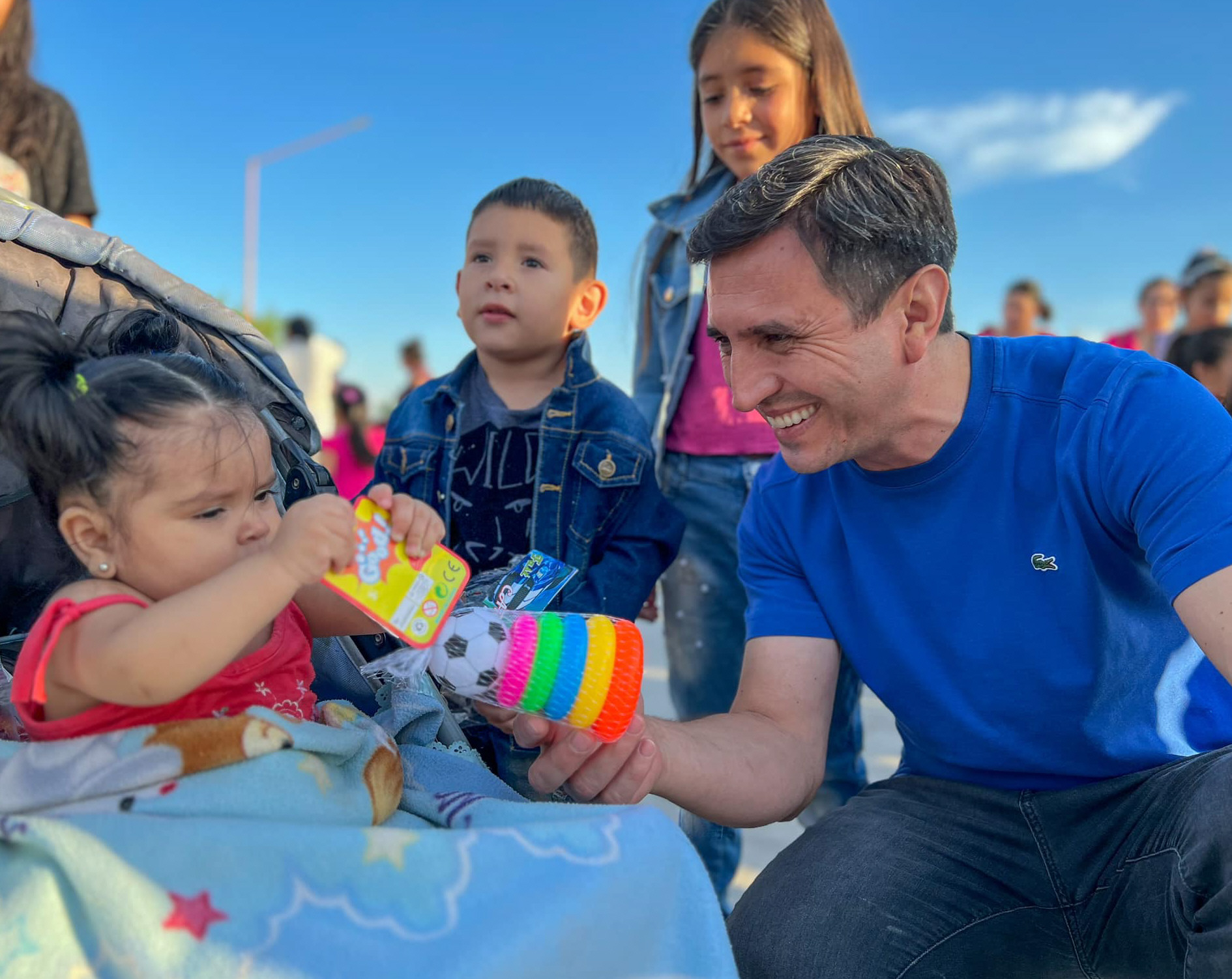 El intendente de San Martín, Cristian Andino, recorrió distintos puntos del departamento para entregar regalos junto a los tres Reyes Magos. Allegados indicaron que le exigieron que se disfrace, pero al parecer el jefe comunal puso como excusa que no encontró capa de su talle.
