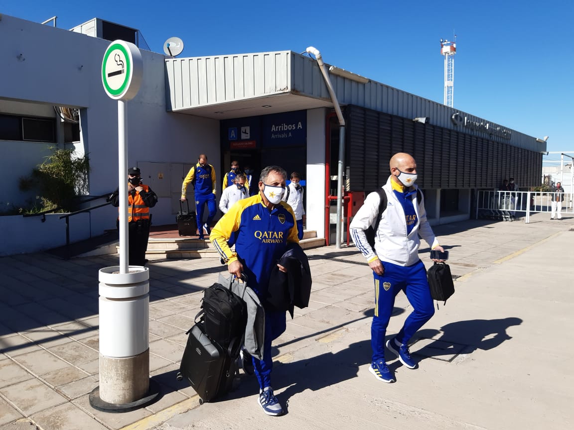 Minutos después de las 13 y cumpliendo con todos los protocolos establecidos para evitar contagios de coronavirus, Boca aterrizó en San Juan. A diferencia de visitas anteriores a la provincia en la que los hinchas colmaban aeropuerto y hotel, esta vez los simpatizantes escucharon el pedido del Gobierno y no llevaron a cabo el tradicional recibimiento al equipo.