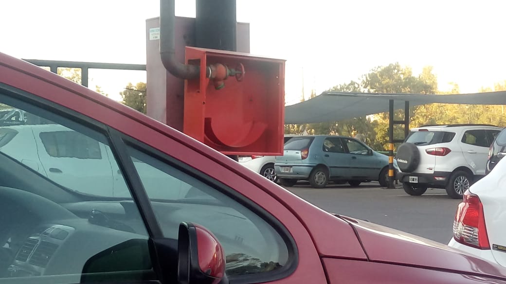 Un lector envió una imagen y el siguiente comentario: "En la playa de estacionamiento del Vea de la calle 25 de Mayo brilla por su ausencia la manguera para extinguir incendios. Nadie controla, parece…".
