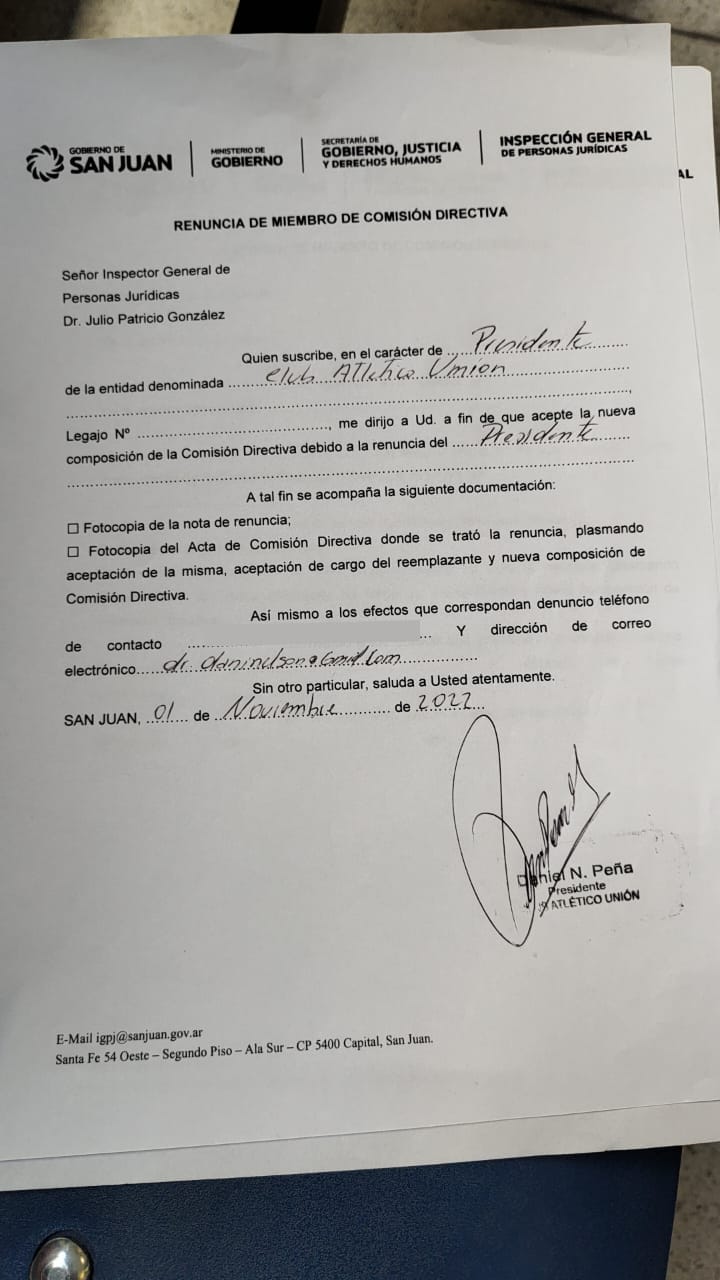 En Villa Krause se viven horas movidas hace unos días. Con la renuncia del presidente Daniel Peña formalizada y siendo presentada en Personería Jurídica en las primeras horas de este martes, por la tarde llegó algo de calma en Atlético Unión con un intento de un dirigente de evitar la intervención, aunque será Personería quien decidirá sobre el futuro del club.