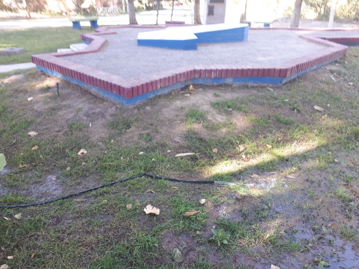 Un lector envió una imagen y el siguiente comentario: “Esto sucede siempre en la plaza de Ullum. El sistema de riego lo rompen, la municipalidad no lo arregla y así pierde agua durante días”.