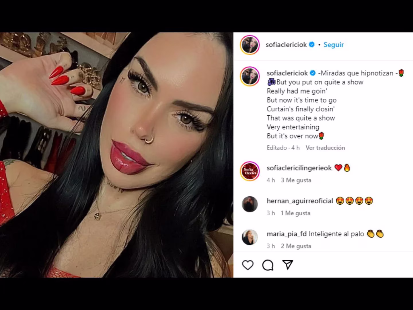 La letra elegida por Sofía Clerici decía en inglés: “Montaste todo un espectáculo. Realmente me tenías, pero ahora es hora de irse. Por fin se cierra el telón. Eso fue todo un espectáculo, muy entretenido, pero ya se acabó”.
