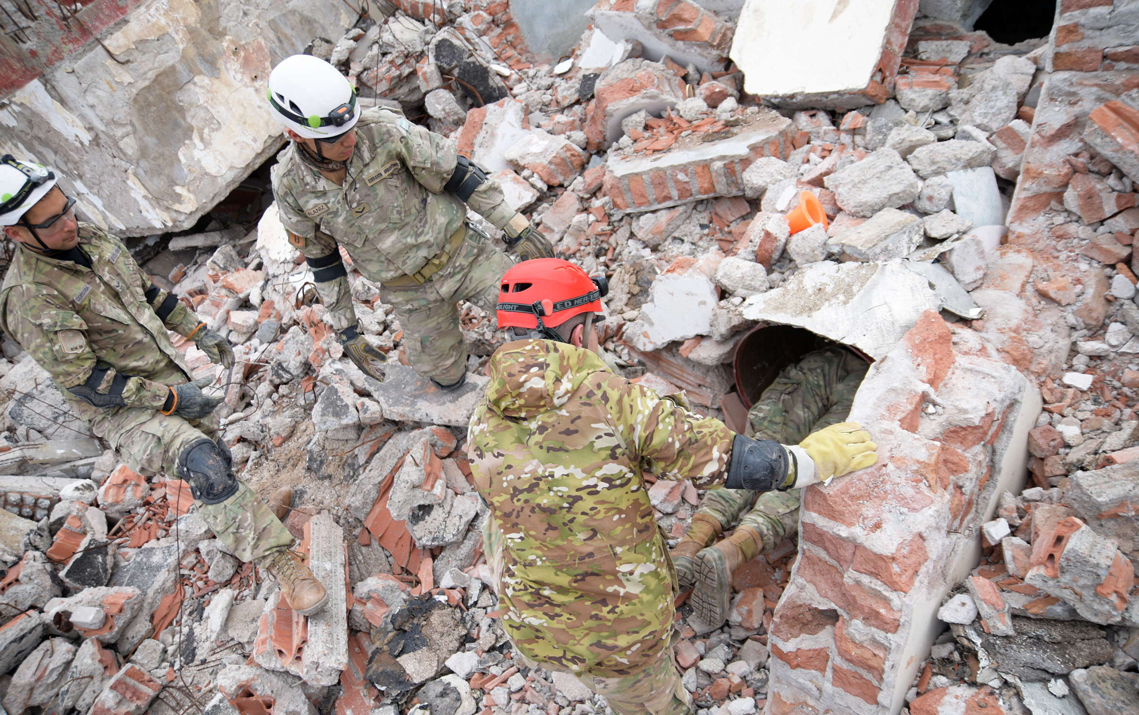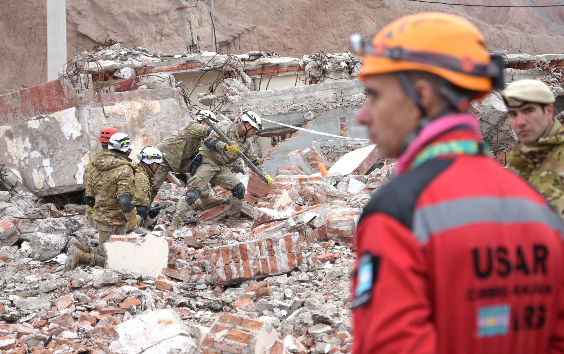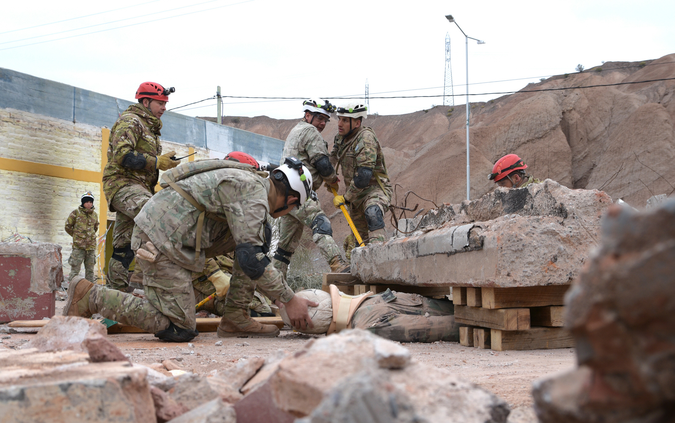 El panorama fue dantesco. Los desgarradores pedidos de ayuda de las víctimas compitieron en importancia con el esfuerzo a contra reloj de quienes intentaban rescatarlas con vida de entre los escombros. El realismo fue destacado, aunque se trató de un ejercicio de capacitación en el que participaron soldados del RIM 22 y de las provincias de Mendoza y La Rioja que integrarán la primera brigada militar USAR del país. Se trata de un grupo especializado en la búsqueda y rescate en estructuras colapsadas que abarcará la región Cuyo y tendrá asiento en San Juan.