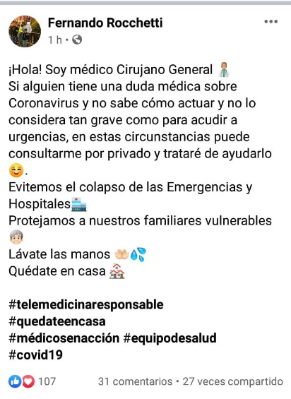 Un médico sanjuanino que vive en Córdoba se ofreció a ayudar de modo online a quienes tengan dudas en torno al coronavirus o síntomas leves compatibles con la enfermedad.