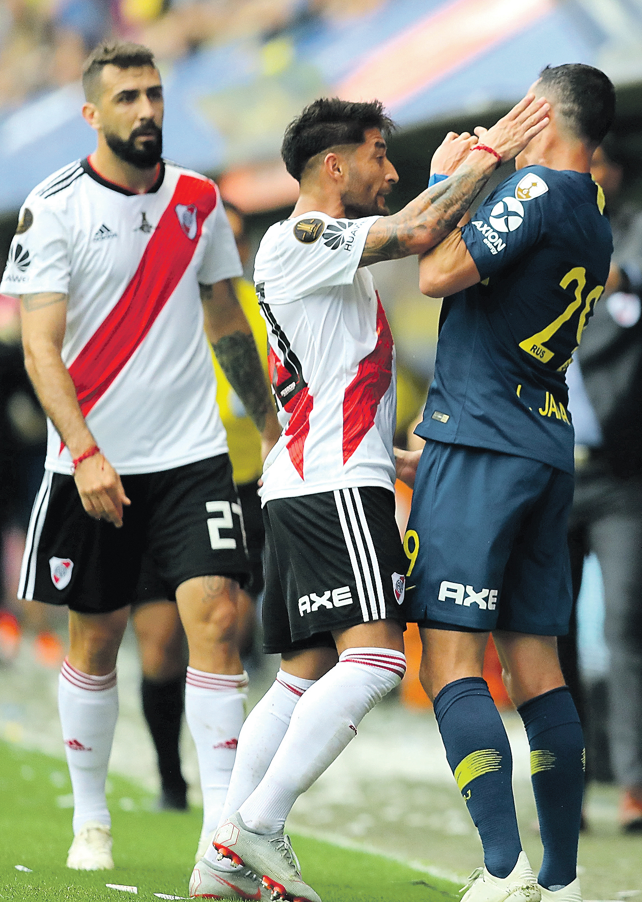 Cuando el lateral de River Milton Casco se trenzó con su "colega" de posición en Boca Leonardo Jara prácticamente en la mitad de la cancha, terminaron a los empujones e inclusive se metió en la discusión el colombiano Wilmar Barrios, pareció que el partido se empiojaba. Que todo eso iba a complicar el arbitraje del chileno Tobar. Pero no pasó nada de eso. El partido siguió siendo leal hasta el mismo final.