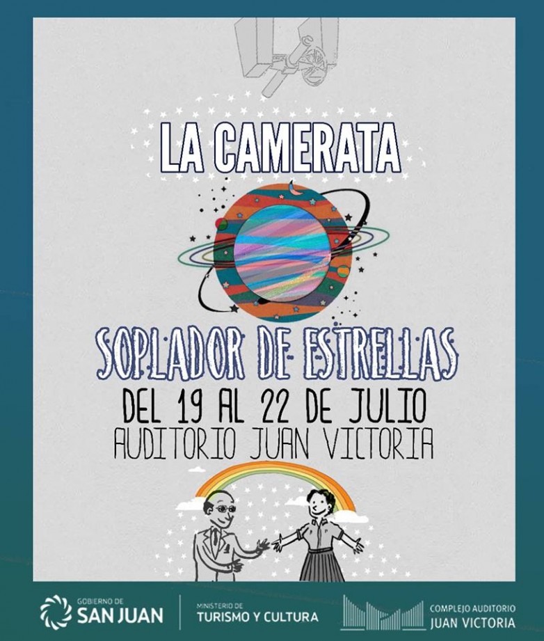 La Camerata San Juan se prepara para brindar un espectáculo destinado, especialmente, a los más chiquitos. En estas vacaciones de invierno, las familias tendrán la posibilidad de disfrutar “Soplador de Estrellas”, un musical infantil que tendrá lugar el 19, 20, 21 y 22 de este mes, a partir de las 15.30, en el Auditorio Juan Victoria.
