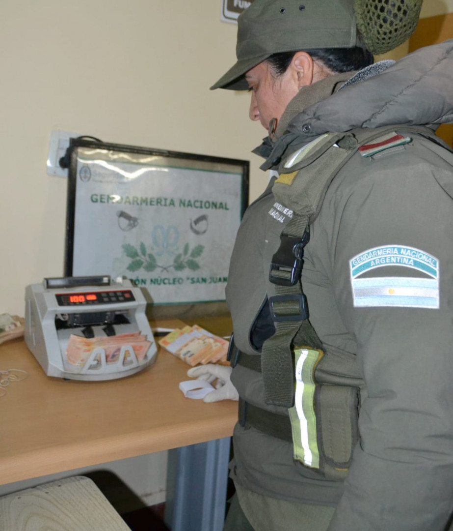 Como resultado del control, los gendarmes observaron que en el asiento trasero había tres bolsas tipo arpillera, las cuales contenían en su interior billetes de moneda nacional.