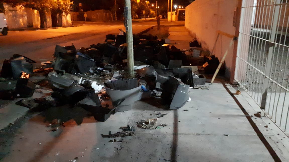Vecinos de la zona mostraron enorme sorpresa al toparse esta mañana con decenas de televisores quemados, en la vía pública, en pleno corazón de Rawson.