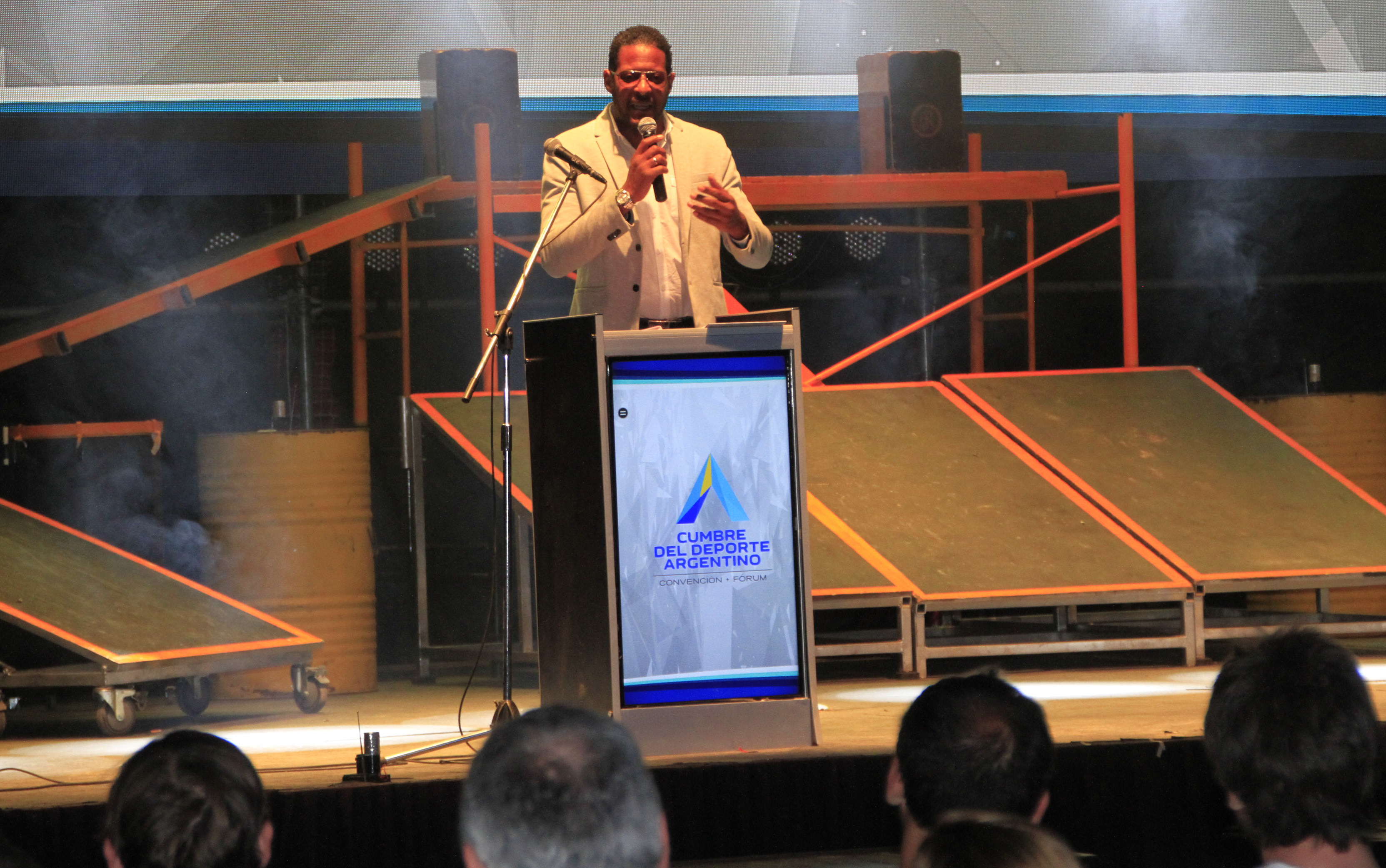 Es claramente uno de los ejemplos a seguir por los amantes del atletismo y por los deportistas en general. Javier Sotomayor, el exatleta cubano que todavía ostenta el récord mundial de salto en alto, estuvo en el cierre de la segunda y penúltima jornada de actividad de la II edición de la Cumbre del Deporte en el escenario “Entrenando Valores” que tuvo lugar en el Cantoni. Con la presencia del secretario de Deportes Jorge Chica que estuvo acompañado por los secretarios de deportes de varias provincias del país, la charla del exatleta arrancó pasadas las 22, una hora después de lo previsto,