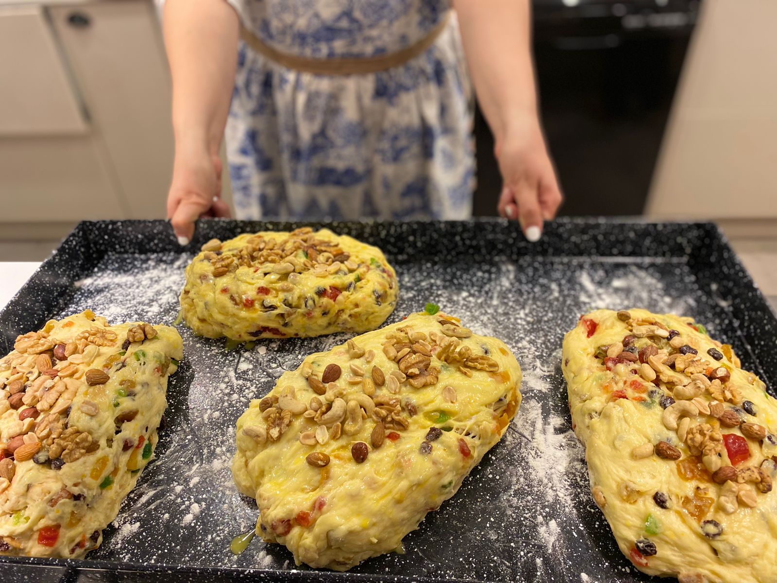 Su hija Luisa, a su modo y muchos años después, repite la costumbre. Ella prepara panes dulces típicamente europeos. Stollen como los que se comen en Austria y Alemania, también otra versión llamada Dresde, una ciudad al este de Alemania que tiene su propia preparación navideña. La profe de Geografía jubilada, costurera por hobbie y ahora pastelera para deleitar a propios y ajenos, recopiló algunas recetas de familia -desde la de su abuela y su mamá, Dorotea Schultz, que vino con 5 años de Berlín, sin dejar de lado, por supuesto, la de su papá- más otras versiones que fue encontrando en libros de cocina alemanes, donde además pudo incorporar conceptos claves de las tradiciones, costumbres y sentido de las festividades.