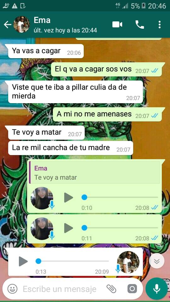Desesperada, intentó seguirlo y la amenazó que la iba a matar, mediante mensajes de texto. Lamentablemente, el problema no terminó allí, cerca de las 4 de la madrugada, el sujeto regresó a buscar a su exmujer y tras insultarla, la agarró del cuello y la arrastró hasta la calle. "Estaba enceguecido. Me corté y me golpeé mientras me agredía", expresó.