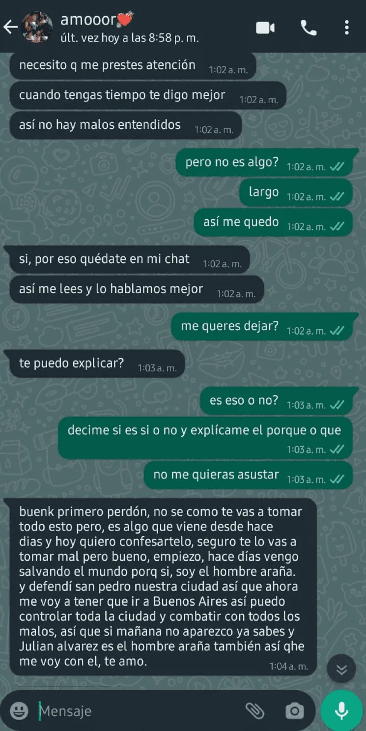 En un día normal, la mujer se encontraba conversando con su novio por WhatsApp. De la nada, él le escribió que le tenía que "decir algo" porque ya no "aguantaba" la situación. Por supuesto que las palabras provocaron que ella se tensione y se ponga triste, ya que no comprendía lo que estaba sucediendo.