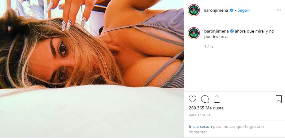 “Ahora que mira’ y no puedes tocar”, escribió la famosa en la publicación.