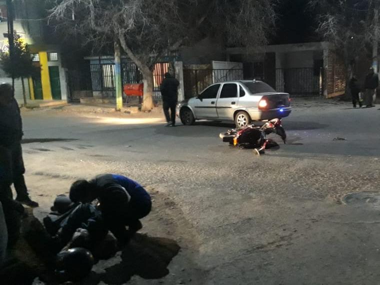 Este viernes, alrededor de las 21.30, un motociclista protagonizó un choque con un Chevrolet Corsa en la calle Mariano Moreno, de Caucete.