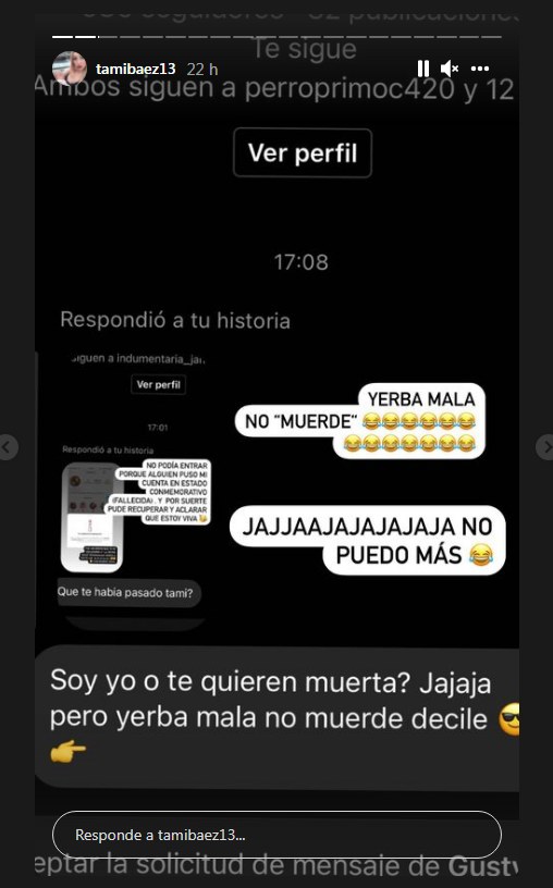 "En memoria de @tamibaez13. Esta cuenta se convirtió en conmemorativa. Las cuentas conmemorativas son un espacio para recordar y honrar la vida de una persona que falleció", se podía leer al intentar ingresar a su perfil.