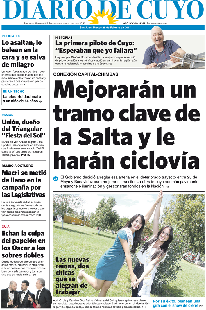 Diario de Cuyo | HOME | Noticias Tapa 28 de Febrero del 2017 Por Redacción Diario de Cuyo 27/02/2017 · 0:00 Escuchar la noticia Escuchar la noticia Your browser doesn’t support HTML5 audio Ver los comentarios ›