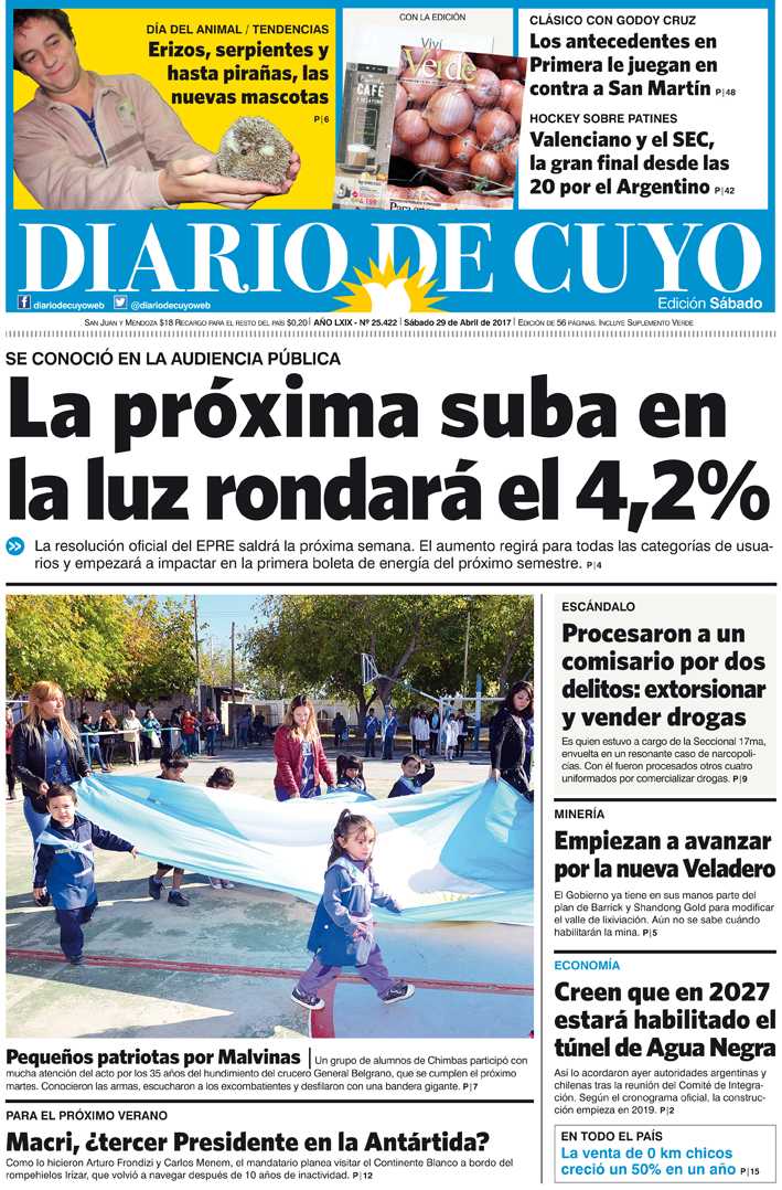 Diario de Cuyo | HOME | Noticias Tapa 29 de Abril de 2017 Por Redacción Diario de Cuyo 29/04/2017 · 0:00 Escuchar la noticia Escuchar la noticia Your browser doesn’t support HTML5 audio Ver los comentarios ›
