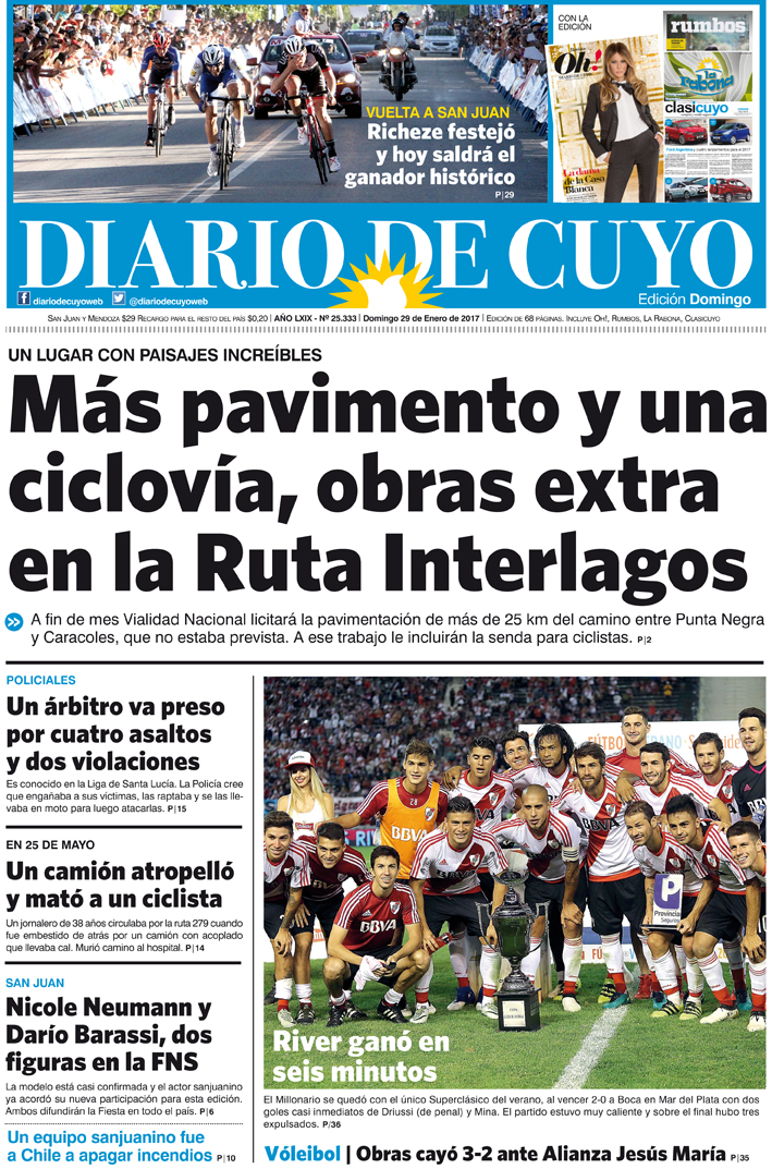 Diario de Cuyo | HOME | Noticias Tapa 29 de enero de 2017 Por Redacción Diario de Cuyo 29/01/2017 · 0:00 Escuchar la noticia Escuchar la noticia Your browser doesn’t support HTML5 audio Ver los comentarios ›