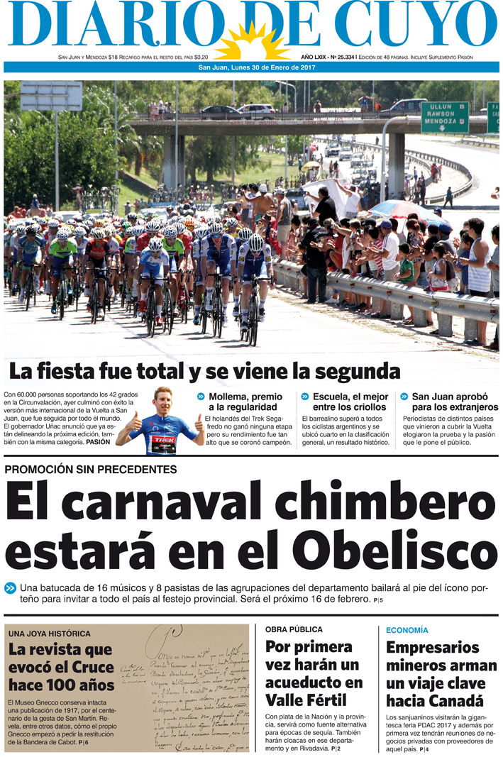 Diario de Cuyo | HOME | Noticias Tapa 30 de Enero del 2017 Por Redacción Diario de Cuyo 30/01/2017 · 0:00 Escuchar la noticia Escuchar la noticia Your browser doesn’t support HTML5 audio Ver los comentarios ›