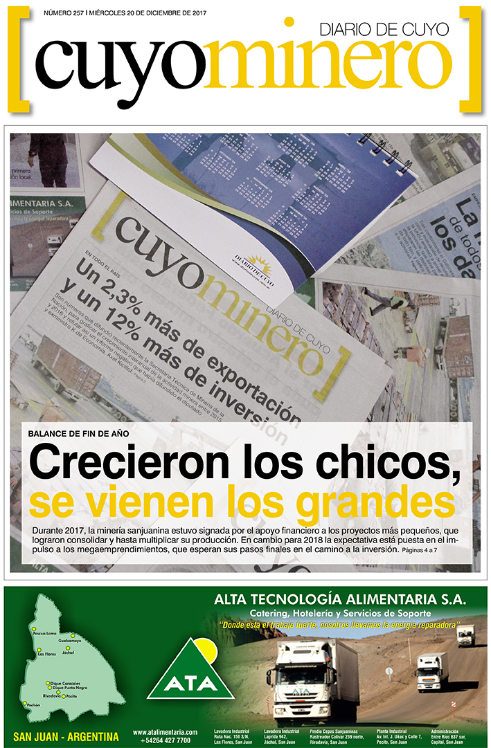 Diario de Cuyo | HOME | Noticias | Cuyo Minero Tapa Cuyo Minero 20 de Diciembre del 2017 Por Redacción Diario de Cuyo 19/12/2017 · 0:00 Escuchar la noticia Escuchar la noticia Your browser doesn’t support HTML5 audio Cuyo Minero Ver los comentarios ›