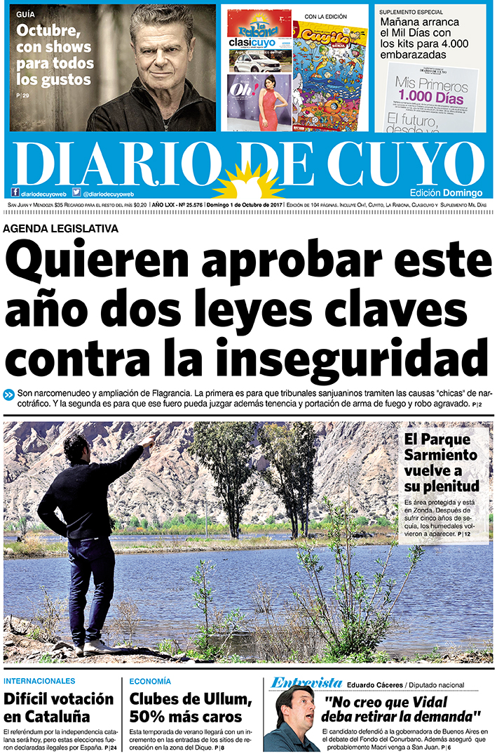 Diario de Cuyo | HOME | Noticias Tapa de Edición 01 de Octubre de 2017 Por Redacción Diario de Cuyo 01/10/2017 · 0:00 Escuchar la noticia Escuchar la noticia Your browser doesn’t support HTML5 audio Ver los comentarios ›