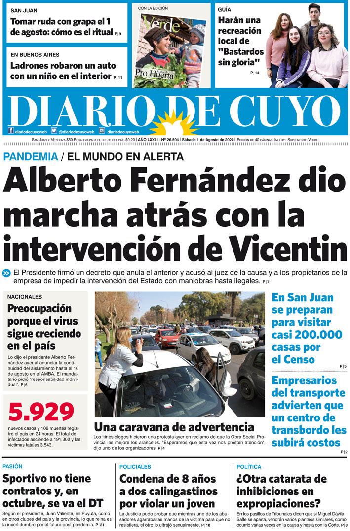 Diario de Cuyo | HOME | Noticias Tapa Edición 01 de Agosto del 2020 Por Redacción Diario de Cuyo 31/07/2020 · 0:00 Escuchar la noticia Escuchar la noticia Your browser doesn’t support HTML5 audio Ver los comentarios ›