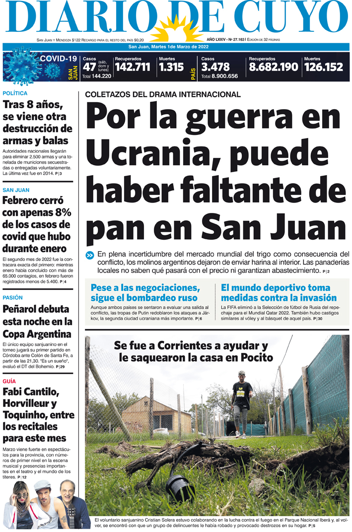 Diario de Cuyo | HOME | Noticias Tapa Edición 01 de Marzo del 2022 Por Redacción Diario de Cuyo 28/02/2022 · 0:00 Escuchar la noticia Escuchar la noticia Your browser doesn’t support HTML5 audio Ver los comentarios ›