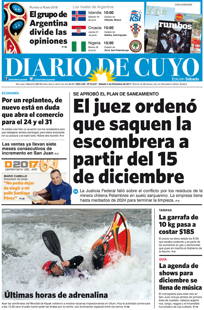 Diario de Cuyo | HOME | Noticias | Tapa Edición Tapa Edición 02 de Diciembre de 2017 Por Redacción Diario de Cuyo 01/12/2017 · 0:00 Escuchar la noticia Escuchar la noticia Your browser doesn’t support HTML5 audio Tapa Edición Ver los comentarios ›