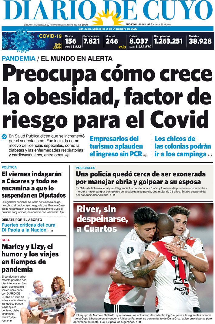 Diario de Cuyo | HOME | Noticias Tapa Edición 02 de Diciembre del 2020 Por Redacción Diario de Cuyo 01/12/2020 · 0:00 Escuchar la noticia Escuchar la noticia Your browser doesn’t support HTML5 audio Ver los comentarios ›