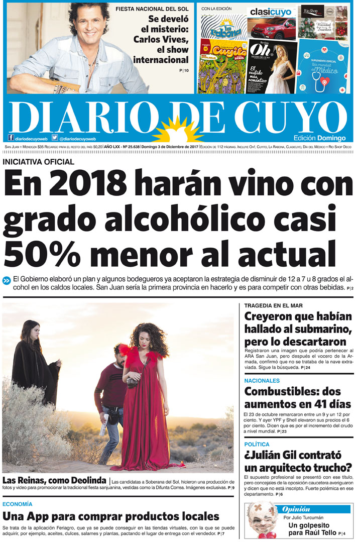 Diario de Cuyo | HOME | Noticias | Tapa Edición Tapa Edición 03 de Diciembre de 2017 Por Redacción Diario de Cuyo 02/12/2017 · 0:00 Escuchar la noticia Escuchar la noticia Your browser doesn’t support HTML5 audio Tapa Edición Ver los comentarios ›