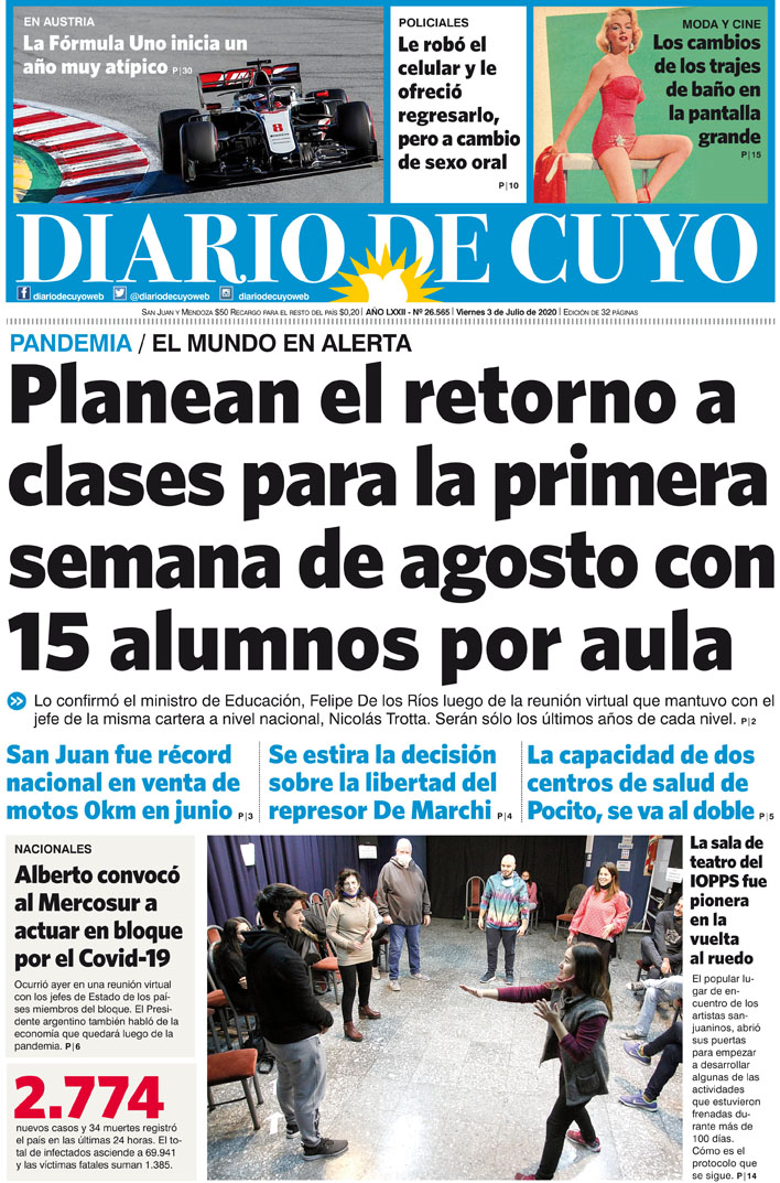 Diario de Cuyo | HOME | Noticias Tapa Edición 03 de Julio del 2020 Por Redacción Diario de Cuyo 02/07/2020 · 0:00 Escuchar la noticia Escuchar la noticia Your browser doesn’t support HTML5 audio Ver los comentarios ›