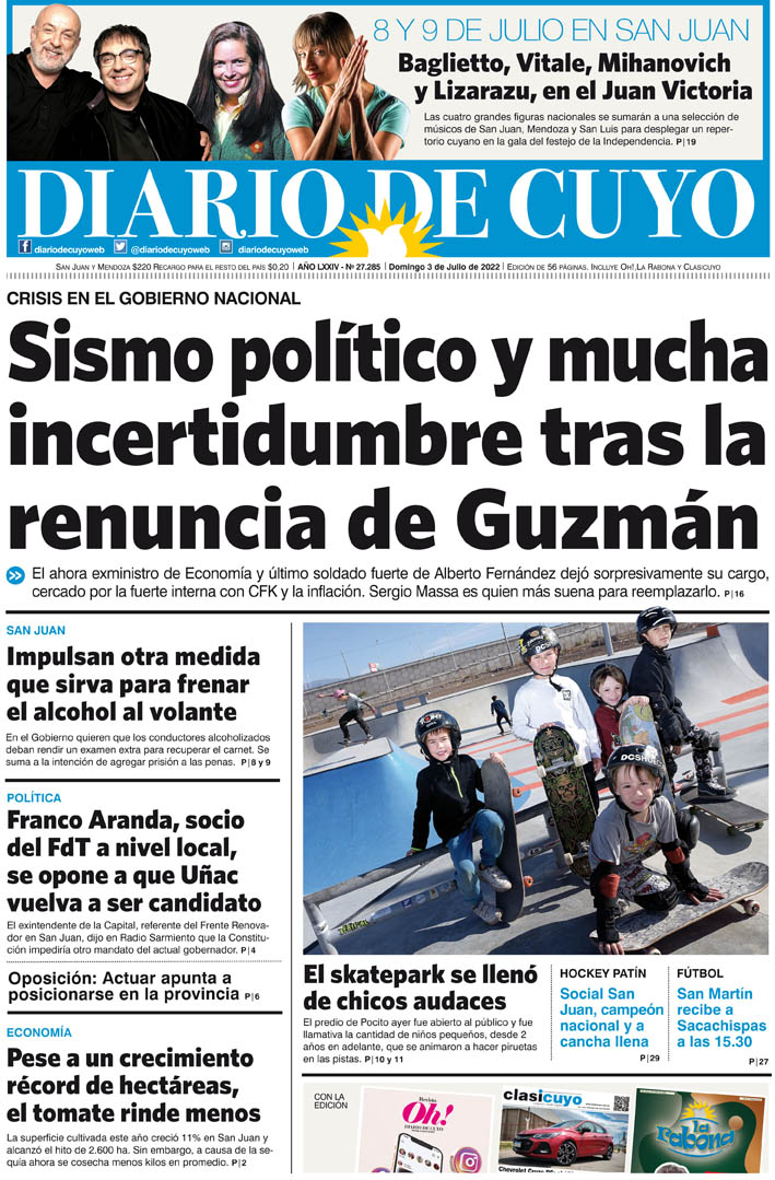 Diario de Cuyo | HOME | Noticias Tapa Edición 03 de Julio del 2022 Por Redacción Diario de Cuyo 02/07/2022 · 0:00 Escuchar la noticia Escuchar la noticia Your browser doesn’t support HTML5 audio Ver los comentarios ›