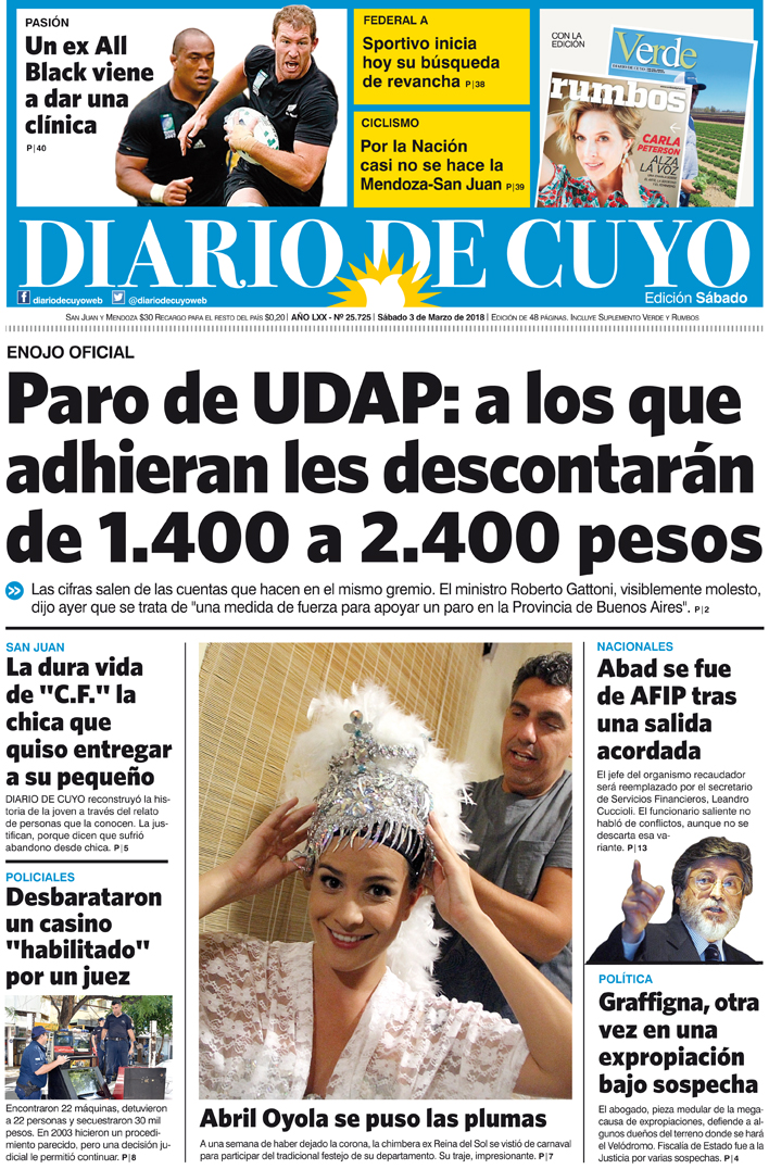 Diario de Cuyo | HOME | Noticias | Tapa Edición Tapa Edición 03 de Marzo del 2018 Por Redacción Diario de Cuyo 02/03/2018 · 0:00 Escuchar la noticia Escuchar la noticia Your browser doesn’t support HTML5 audio Tapa Edición Ver los comentarios ›
