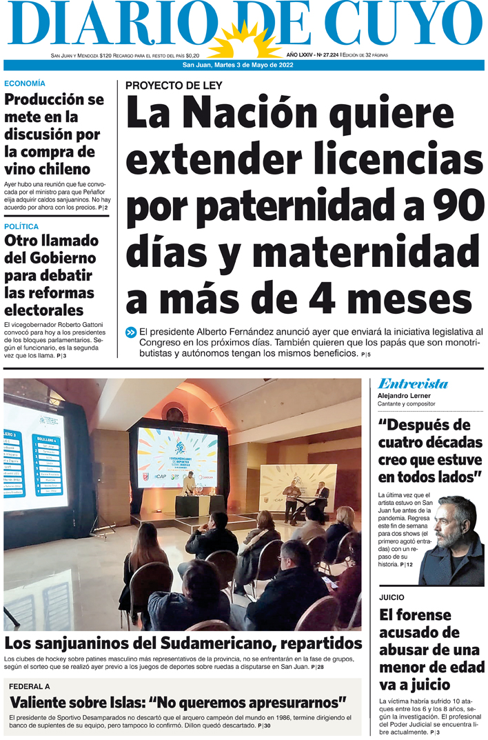 Diario de Cuyo | HOME | Noticias Tapa Edición 03 de Mayo del 2022 Por Redacción Diario de Cuyo 02/05/2022 · 0:00 Escuchar la noticia Escuchar la noticia Your browser doesn’t support HTML5 audio Ver los comentarios ›