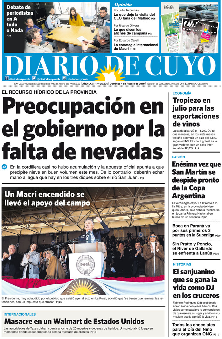 Diario de Cuyo | HOME | Noticias | Tapa Edición Tapa Edición 04 de Agosto de 2019 Por Redacción Diario de Cuyo 03/08/2019 · 0:00 Escuchar la noticia Escuchar la noticia Your browser doesn’t support HTML5 audio Tapa Edición Ver los comentarios ›