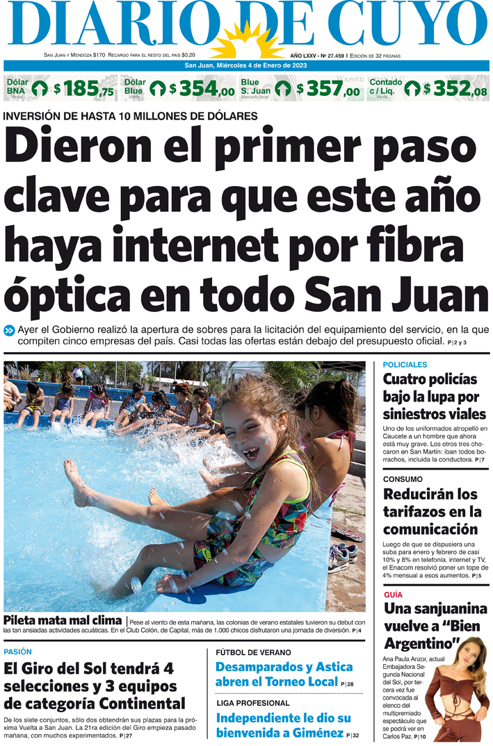 Diario de Cuyo | HOME | Noticias Tapa Edición 04 de Enero del 2023 Por Redacción Diario de Cuyo 03/01/2023 · 0:00 Escuchar la noticia Escuchar la noticia Your browser doesn’t support HTML5 audio Ver los comentarios ›