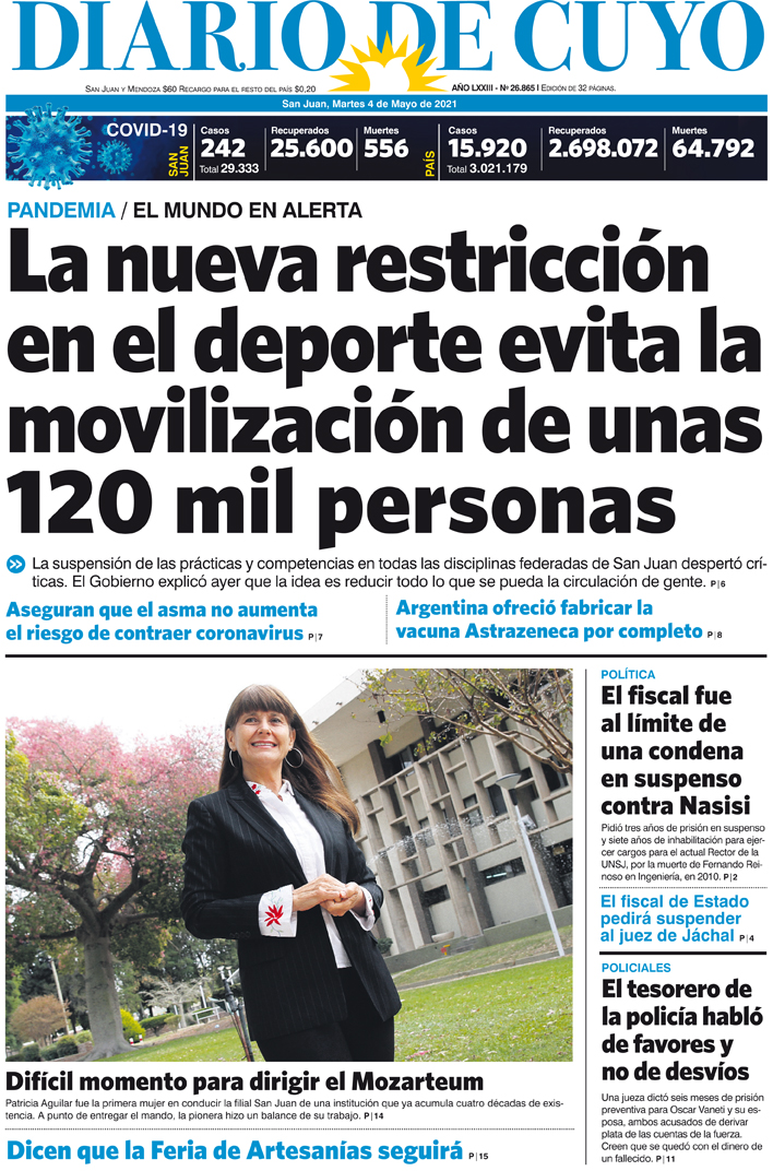 Diario de Cuyo | HOME | Noticias Tapa Edición 04 de Mayo del 2021 Por Redacción Diario de Cuyo 03/05/2021 · 0:00 Escuchar la noticia Escuchar la noticia Your browser doesn’t support HTML5 audio Ver los comentarios ›