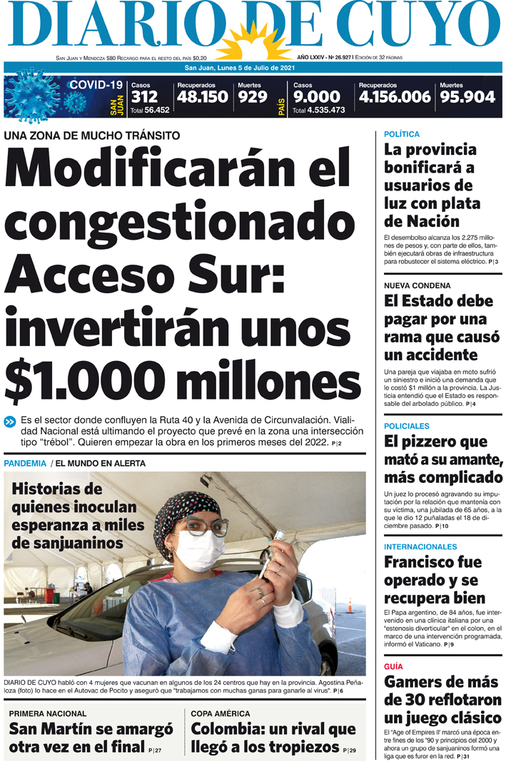 Diario de Cuyo | HOME | Noticias Tapa Edición 05 de Julio del 2021 Por Redacción Diario de Cuyo 04/07/2021 · 0:00 Escuchar la noticia Escuchar la noticia Your browser doesn’t support HTML5 audio Ver los comentarios ›