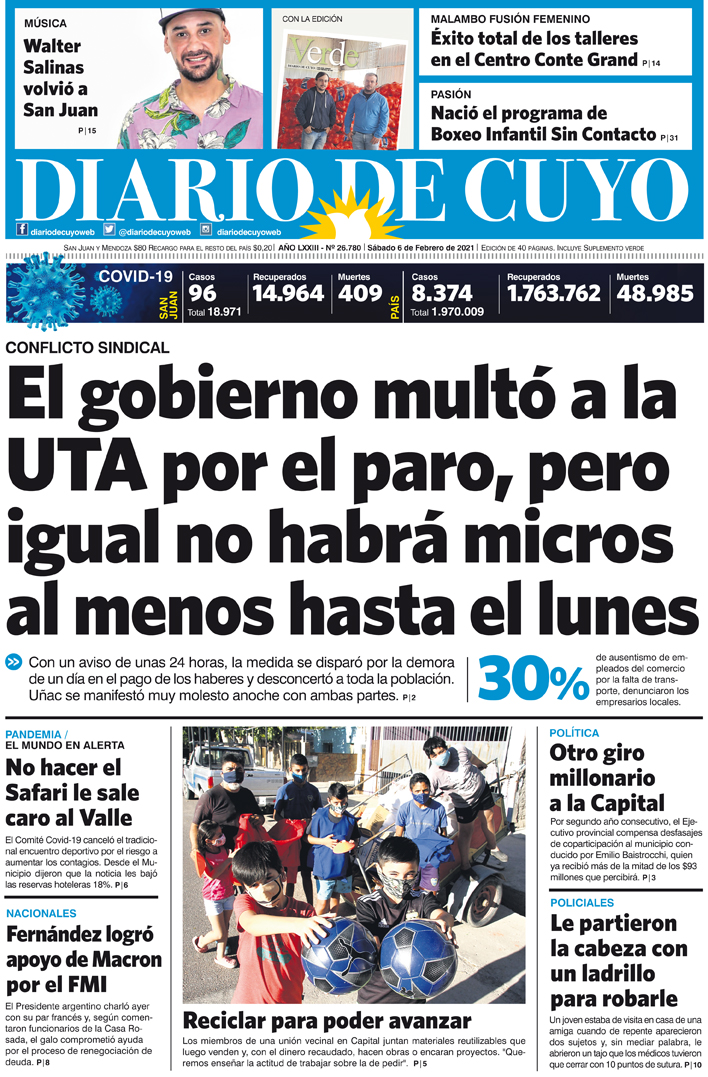 Diario de Cuyo | HOME | Noticias Tapa Edición 06 de Febrero del 2021 Por Redacción Diario de Cuyo 05/02/2021 · 0:00 Escuchar la noticia Escuchar la noticia Your browser doesn’t support HTML5 audio Ver los comentarios ›