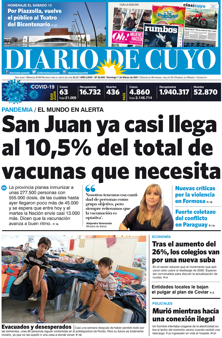 Diario de Cuyo | HOME | Noticias | Tapa Edición Tapa Edición 07 de Marzo del 2021 Por Redacción Diario de Cuyo 06/03/2021 · 0:00 Escuchar la noticia Escuchar la noticia Your browser doesn’t support HTML5 audio Tapa Edición Ver los comentarios ›