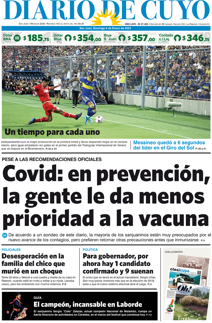Diario de Cuyo | HOME | Noticias Tapa Edición 08 de Enero del 2023 Por Redacción Diario de Cuyo 08/01/2023 · 0:00 Escuchar la noticia Escuchar la noticia Your browser doesn’t support HTML5 audio Ver los comentarios ›