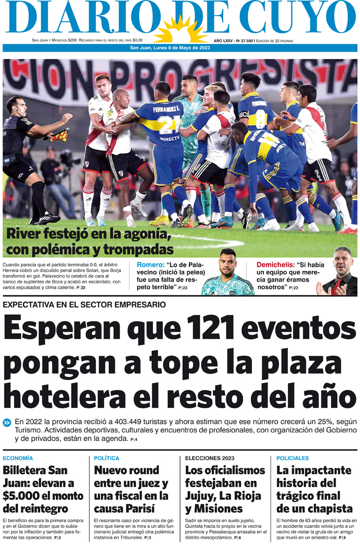 Diario de Cuyo | HOME | Noticias Tapa Edición 08 de Mayo del 2023 Por Redacción Diario de Cuyo 07/05/2023 · 0:00 Escuchar la noticia Escuchar la noticia Your browser doesn’t support HTML5 audio Ver los comentarios ›