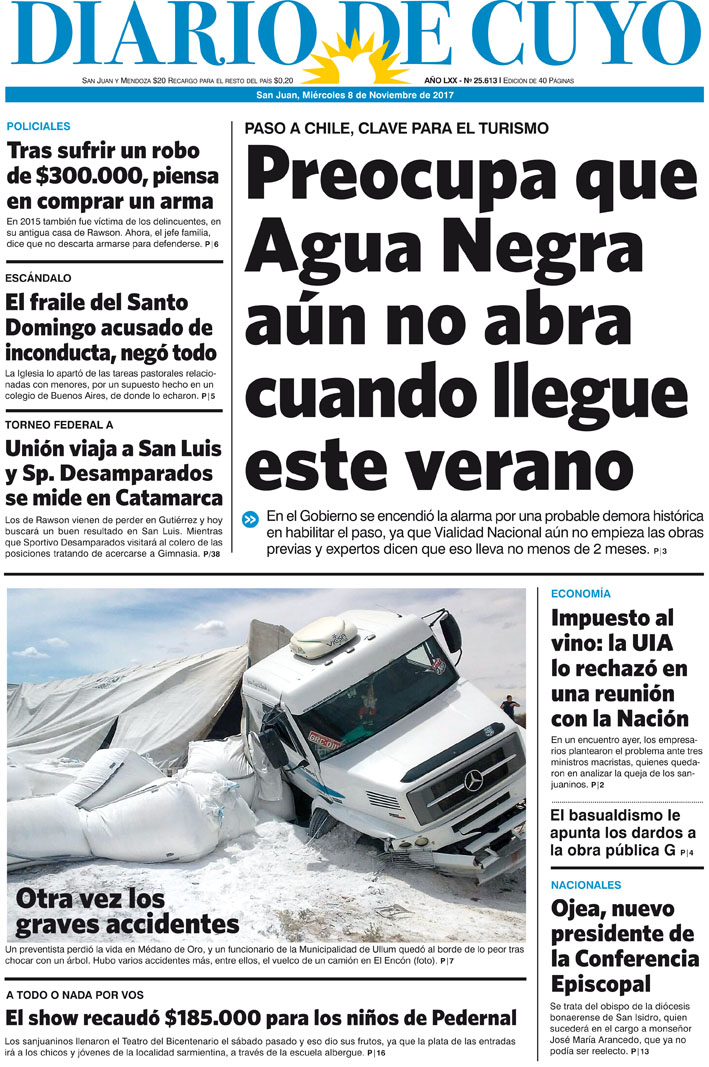 Diario de Cuyo | HOME | Noticias | Tapa Edición Tapa Edición 08 de Noviembre de 2017 Por Redacción Diario de Cuyo 07/11/2017 · 0:00 Escuchar la noticia Escuchar la noticia Your browser doesn’t support HTML5 audio Tapa Edición Ver los comentarios ›