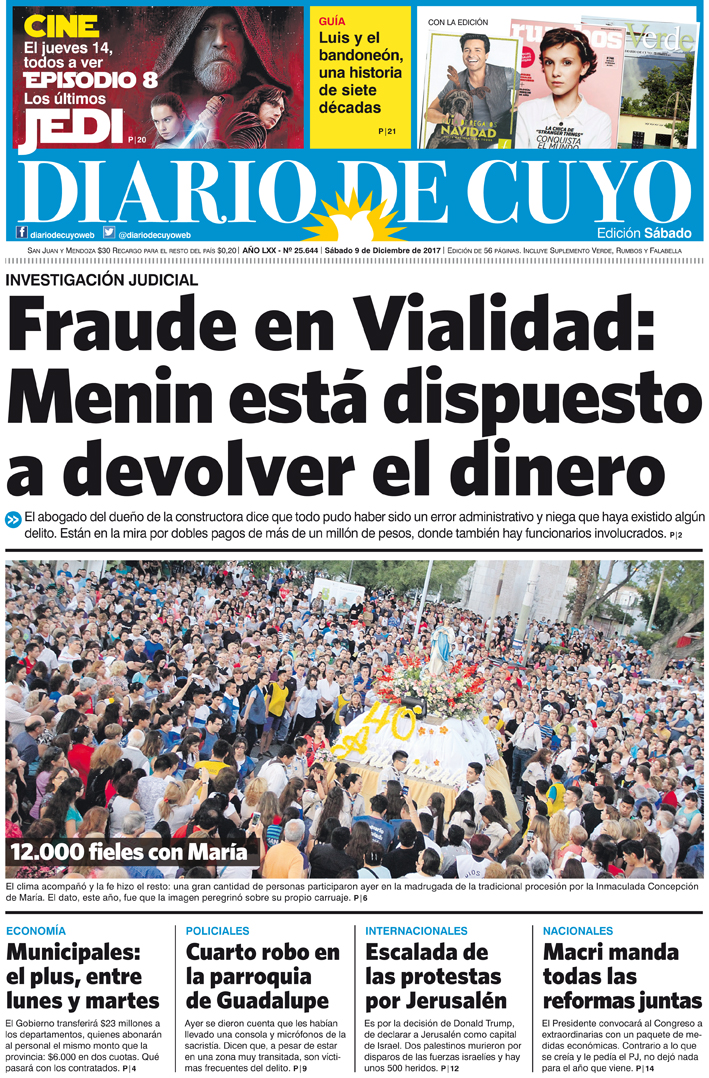 Diario de Cuyo | HOME | Noticias | Tapa Edición Tapa Edición 09 de Diciembre de 2017 Por Redacción Diario de Cuyo 08/12/2017 · 0:00 Escuchar la noticia Escuchar la noticia Your browser doesn’t support HTML5 audio Tapa Edición Ver los comentarios ›