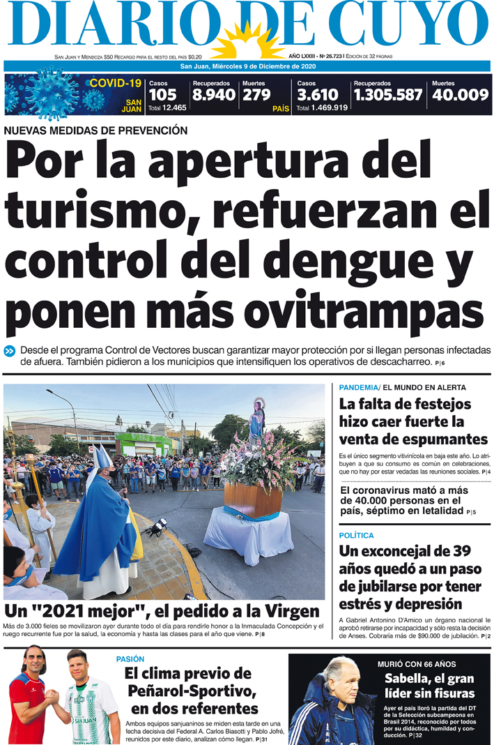 Diario de Cuyo | HOME | Noticias Tapa Edición 09 de Diciembre del 2020 Por Redacción Diario de Cuyo 08/12/2020 · 0:00 Escuchar la noticia Escuchar la noticia Your browser doesn’t support HTML5 audio Ver los comentarios ›