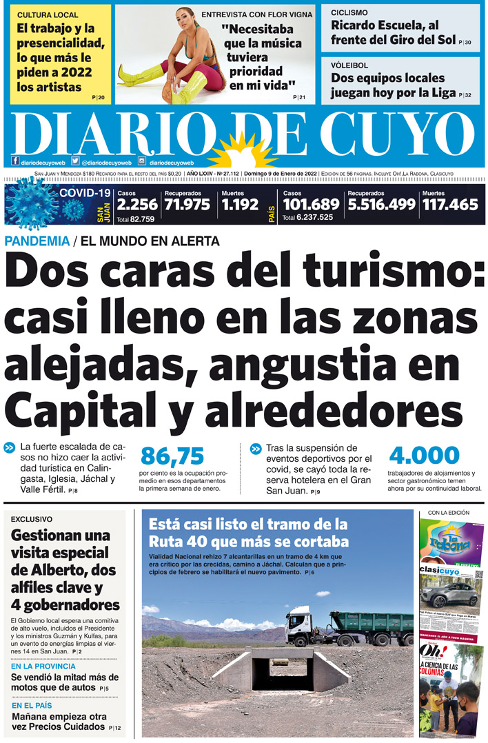 Diario de Cuyo | HOME | Noticias Tapa Edición 09 de Enero del 2022 Por Redacción Diario de Cuyo 08/01/2022 · 0:00 Escuchar la noticia Escuchar la noticia Your browser doesn’t support HTML5 audio Ver los comentarios ›