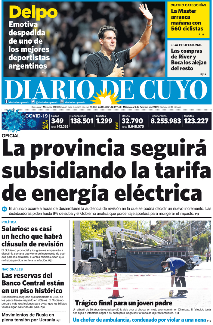 Diario de Cuyo | HOME | Noticias Tapa Edición 09 de Febrero del 2022 Por Redacción Diario de Cuyo 09/02/2022 · 0:00 Escuchar la noticia Escuchar la noticia Your browser doesn’t support HTML5 audio Ver los comentarios ›