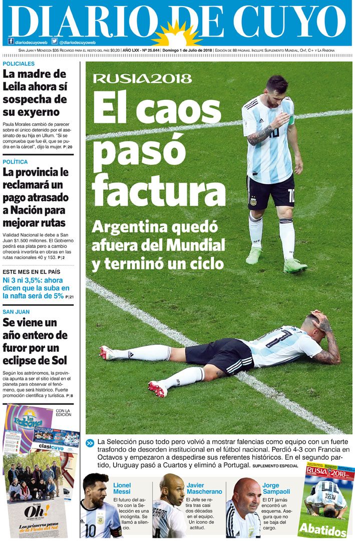 Diario de Cuyo | HOME | Noticias | Tapa Edición Tapa Edición 1 de Julio 2018 Por Redacción Diario de Cuyo 30/06/2018 · 0:00 Escuchar la noticia Escuchar la noticia Your browser doesn’t support HTML5 audio Tapa Edición Ver los comentarios ›