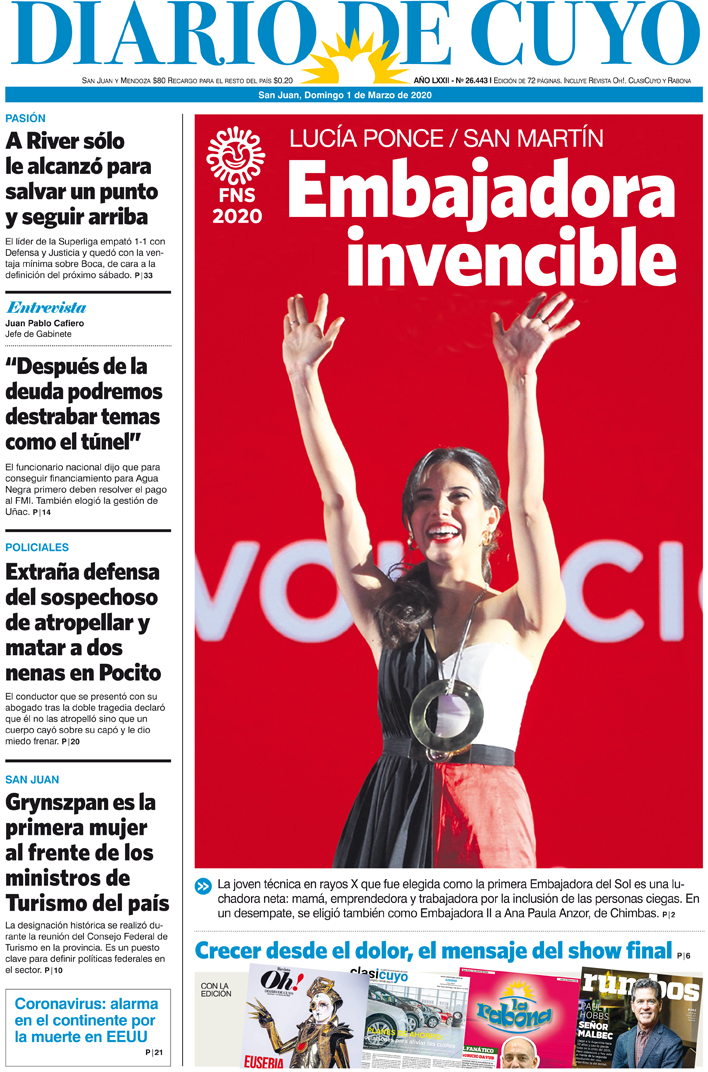 Diario de Cuyo | HOME | Noticias | Tapa Edición Tapa Edición 1 de Marzo de 2020 Por Redacción Diario de Cuyo 01/03/2020 · 0:00 Escuchar la noticia Escuchar la noticia Your browser doesn’t support HTML5 audio Tapa Edición Ver los comentarios ›