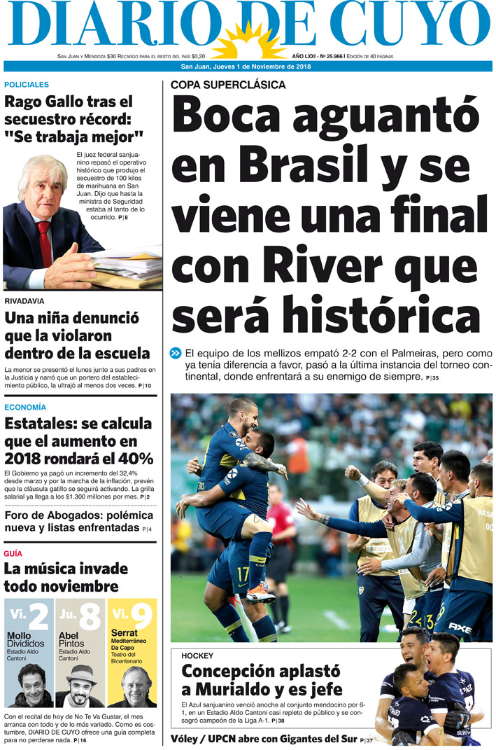 Diario de Cuyo | HOME | Noticias | Tapa Edición Tapa Edición 1 de Noviembre 2018 Por Redacción Diario de Cuyo 01/11/2018 · 0:00 Escuchar la noticia Escuchar la noticia Your browser doesn’t support HTML5 audio Tapa Edición Ver los comentarios ›